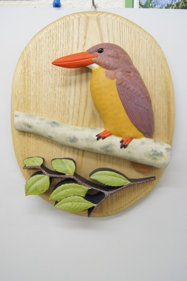 アカショウビンのレリーフプラークです。深山のブナの森で、アカショウビンの声が聞こえてくるのを想像しながら作りました。お客様からのオーダーです。